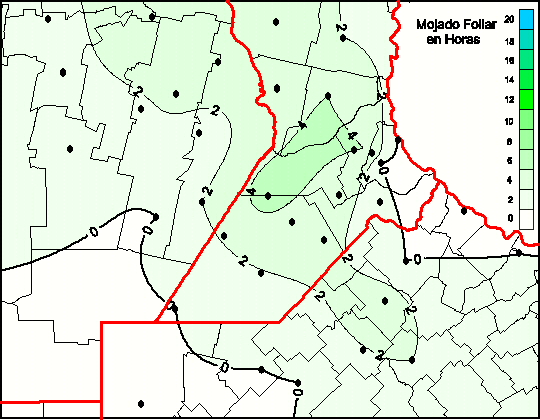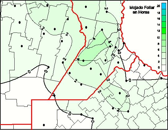 Mapa de humedad de hoja de las las últimas 48 horas.(Desde las 8:00AM hasta las 8:00AM). Se actualiza a las 10:00hs.