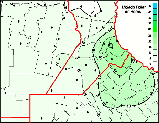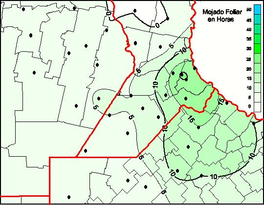Mapa de humedad de hoja de las las últimas 120 horas.
