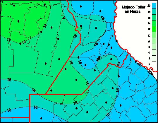Mapa de humedad de hoja de las las últimas 48 horas.(Desde las 8:00AM hasta las 8:00AM). Se actualiza a las 10:00hs.