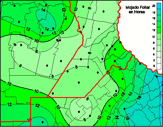 Mapa de humedad de hoja de las las últimas 48 horas.(Desde las 8:00AM hasta las 8:00AM). Se actualiza a las 10:00hs.