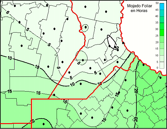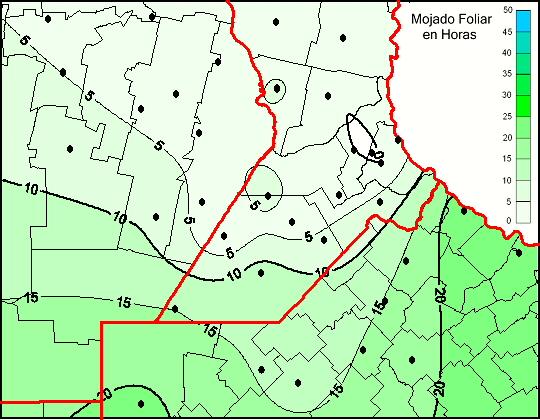 Mapa de humedad de hoja de las las últimas 120 horas.