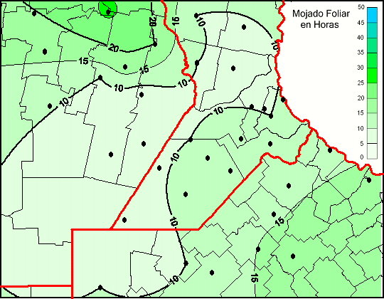 Mapa de humedad de hoja de las las últimas 120 horas.