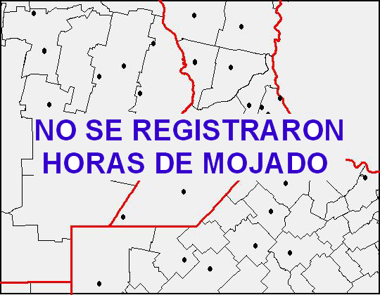 Mapa de cantidad de horas de mojado foliar en las últimas 24 horas.