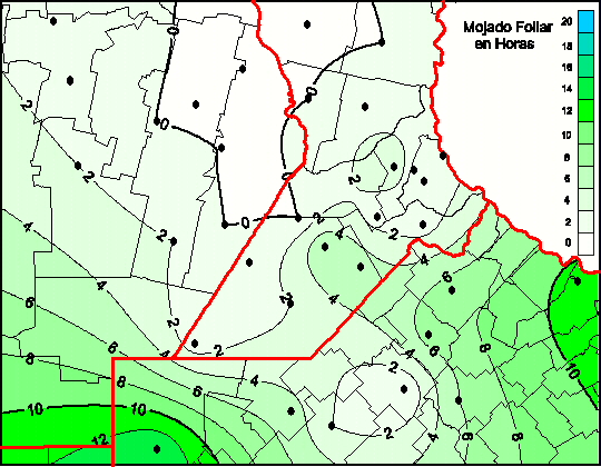 Mapa de humedad de hoja de las las últimas 48 horas.