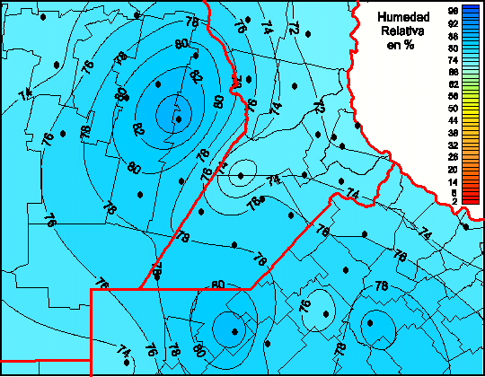 Mapa de humedad relativa de las las últimas 2 horas.(Desde las 8:00AM hasta las 8:00AM). Se actualiza a las 10:00hs.
