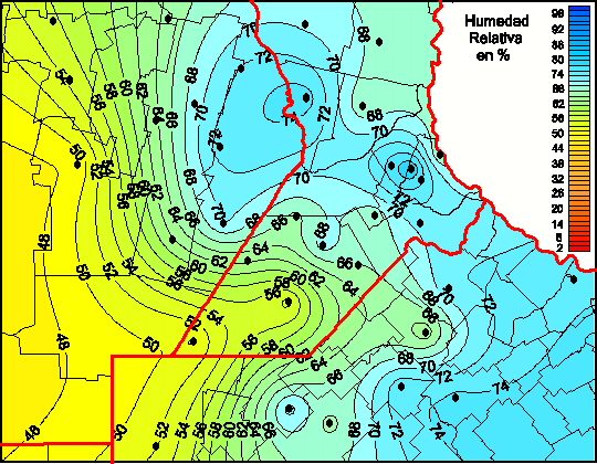 Mapa de humedad relativa de las las últimas 120 horas.(Desde las 8:00AM hasta las 8:00AM). Se actualiza a las 10:00hs.