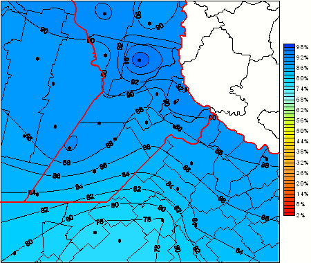 Mapa de humedad relativa de las las últimas 72 horas.(Desde las 8:00AM hasta las 8:00AM). Se actualiza a las 10:00hs.