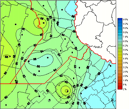 Mapa de humedad relativa de las las últimas 72 horas.(Desde las 8:00AM hasta las 8:00AM). Se actualiza a las 10:00hs.