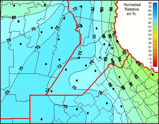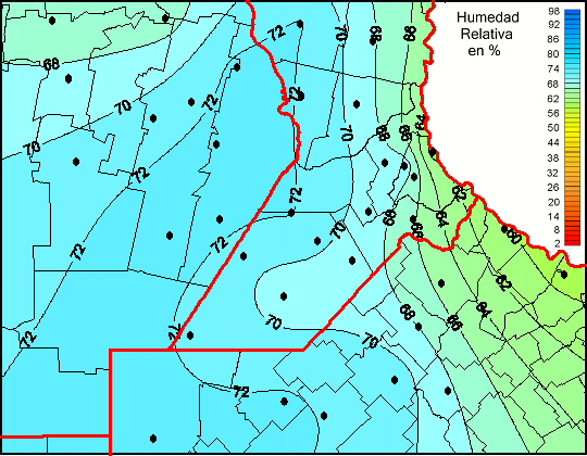Mapa de humedad relativa de las las últimas 120 horas.(Desde las 8:00AM hasta las 8:00AM). Se actualiza a las 10:00hs.