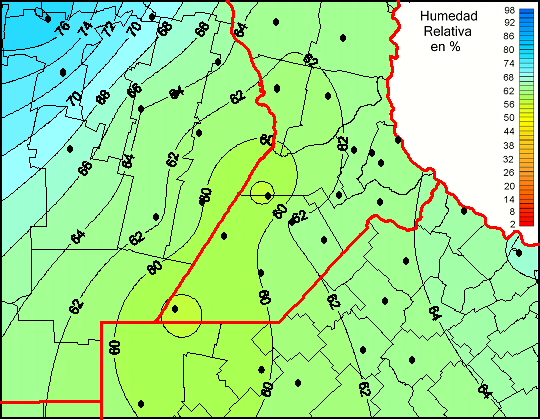 Mapa de humedad relativa de las las últimas 72 horas.(Desde las 8:00AM hasta las 8:00AM). Se actualiza a las 10:00hs.