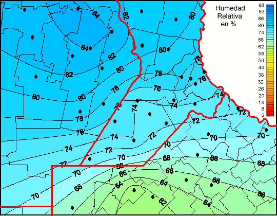 Mapa de humedad relativa de las las últimas 72 horas.(Desde las 8:00AM hasta las 8:00AM). Se actualiza a las 10:00hs.