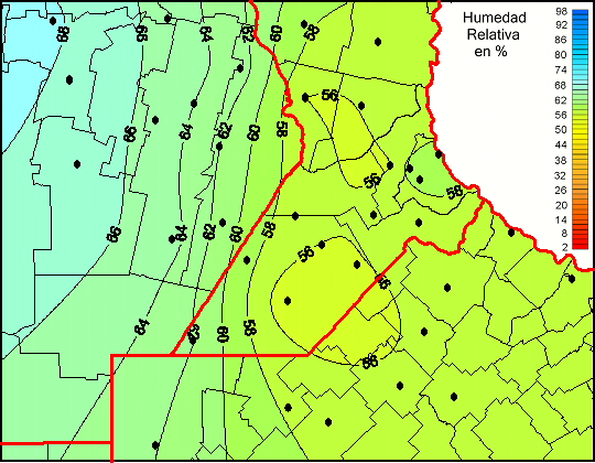 Mapa de humedad relativa de las las últimas 0 horas.(Desde las 8:00AM hasta las 8:00AM). Se actualiza a las 10:00hs.
