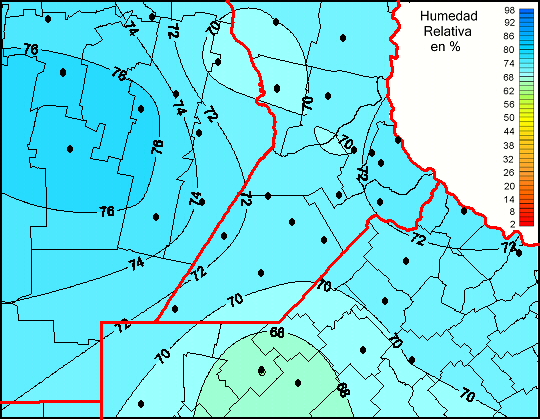 Mapa de humedad relativa de las las últimas 120 horas.(Desde las 8:00AM hasta las 8:00AM). Se actualiza a las 10:00hs.