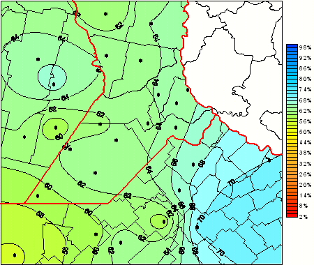 Mapa de humedad relativa de las las últimas 72 horas.(Desde las 8:00AM hasta las 8:00AM). Se actualiza a las 10:00hs.
