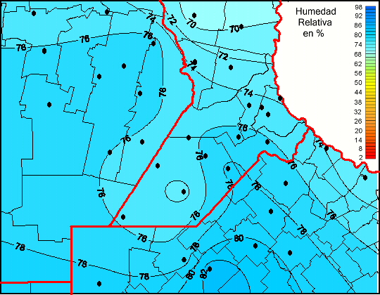 Mapa de humedad relativa de las las últimas 72 horas.(Desde las 8:00AM hasta las 8:00AM). Se actualiza a las 10:00hs.