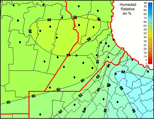Mapa de humedad relativa de las las últimas 72 horas.(Desde las 8:00AM hasta las 8:00AM). Se actualiza a las 10:00hs.