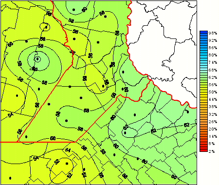 Mapa de humedad relativa de las las últimas 120 horas.(Desde las 8:00AM hasta las 8:00AM). Se actualiza a las 10:00hs.