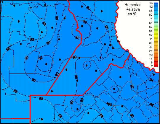 Mapa de humedad relativa de las las últimas 120 horas.(Desde las 8:00AM hasta las 8:00AM). Se actualiza a las 10:00hs.
