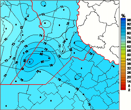 Mapa de humedad relativa de las las últimas 0 horas.(Desde las 8:00AM hasta las 8:00AM). Se actualiza a las 10:00hs.