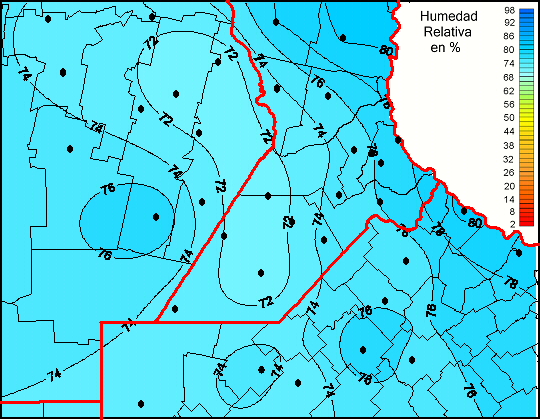 Mapa de humedad relativa de las las últimas 120 horas.(Desde las 8:00AM hasta las 8:00AM). Se actualiza a las 10:00hs.
