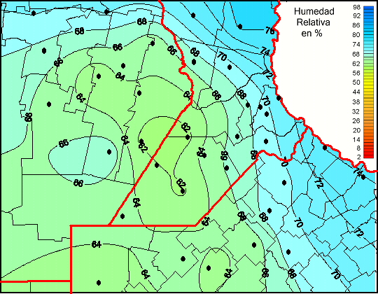 Mapa de humedad relativa de las las últimas 72 horas.(Desde las 8:00AM hasta las 8:00AM). Se actualiza a las 10:00hs.