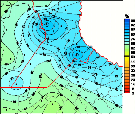 Mapa de humedad relativa de las las últimas 72 horas.(Desde las 8:00AM hasta las 8:00AM). Se actualiza a las 10:00hs.