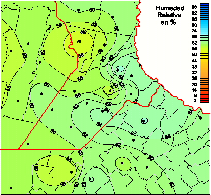 Mapa de humedad relativa de las las últimas 72 horas.(Desde las 8:00AM hasta las 8:00AM). Se actualiza a las 10:00hs.