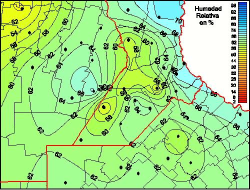 Mapa de humedad relativa de las las últimas 120 horas.(Desde las 8:00AM hasta las 8:00AM). Se actualiza a las 10:00hs.
