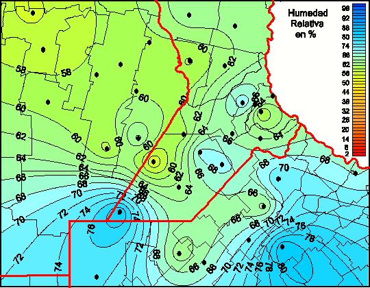 Mapa de humedad relativa de las las últimas 72 horas.(Desde las 8:00AM hasta las 8:00AM). Se actualiza a las 10:00hs.
