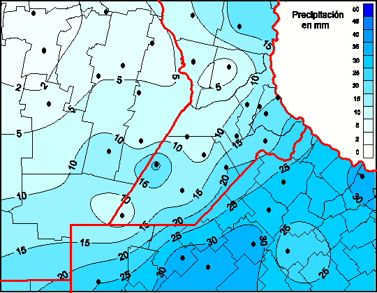 Mapa de precipitación acumulada en las últimas 72 horas.