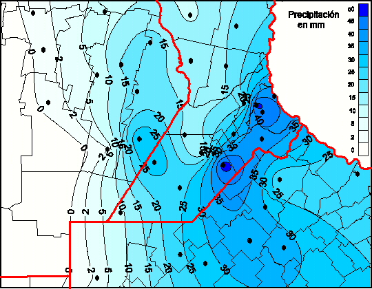 Mapa de precipitación acumulada en las últimas 48 horas.(Desde las 8:00AM hasta las 8:00AM). Se actualiza a las 10:00hs.