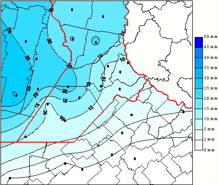 Mapa de precipitación acumulada en las últimas 24 horas.