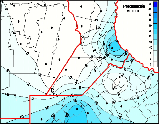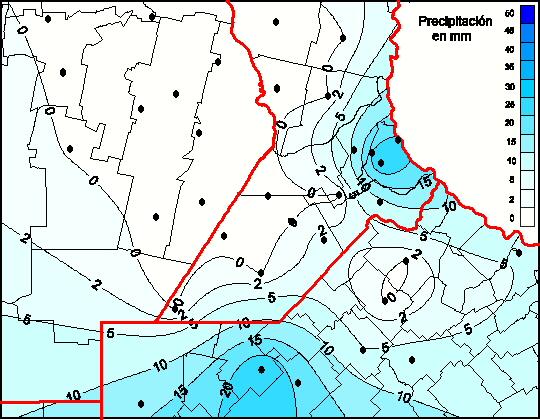 Mapa de precipitación acumulada en las últimas 72 horas.