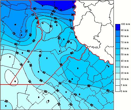 Mapa de precipitación acumulada en las últimas 96 horas.(Desde las 8:00AM hasta las 8:00AM). Se actualiza a las 10:00hs.