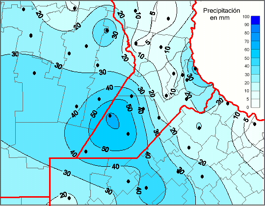 Mapa de precipitación acumulada en las últimas 144 horas.(Desde las 8:00AM hasta las 8:00AM). Se actualiza a las 10:00hs.