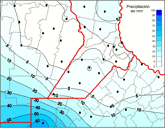 Mapa de precipitación acumulada en las últimas 96 horas.(Desde las 8:00AM hasta las 8:00AM). Se actualiza a las 10:00hs.