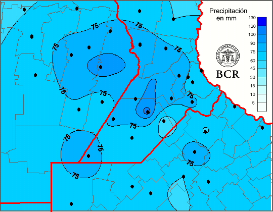 Mapa de precipitación acumulada en las últimas 120 horas.