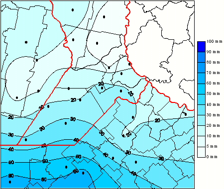 Mapa de precipitación acumulada en las últimas 96 horas.(Desde las 8:00AM hasta las 8:00AM). Se actualiza a las 10:00hs.