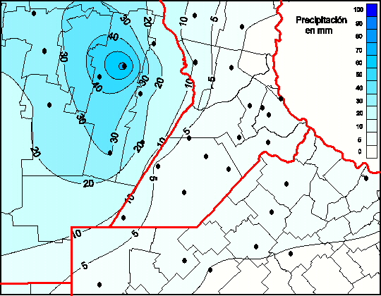 Mapa de precipitación acumulada en las últimas 72 horas.