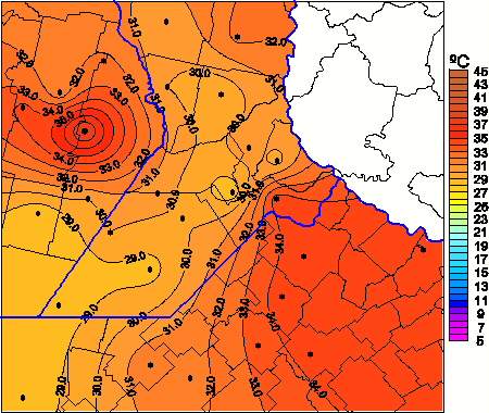 Mapa de temperaturas máximas de las las últimas 24 horas.