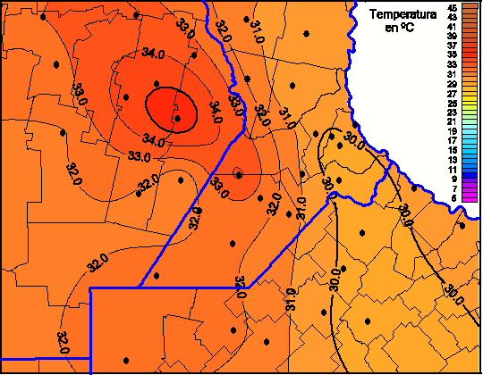 Mapa de temperaturas máximas de las las últimas 96 horas.