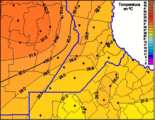 Mapa de temperaturas máximas de las las últimas 24 horas.