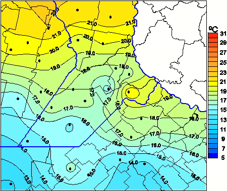 Mapa de temperaturas máximas de las las últimas 24 horas.
