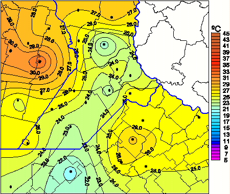 Mapa de temperaturas máximas de las las últimas 72 horas.(Desde las 8:00AM hasta las 8:00AM). Se actualiza a las 10:00hs.