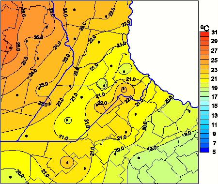 Mapa de temperaturas máximas de las las últimas 24 horas.