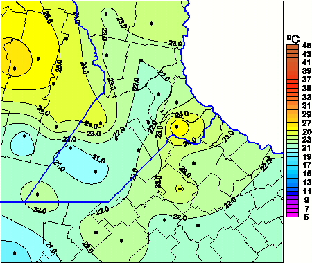 Mapa de temperaturas máximas de las las últimas 72 horas.(Desde las 8:00AM hasta las 8:00AM). Se actualiza a las 10:00hs.
