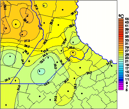 Mapa de temperaturas máximas de las las últimas 24 horas.