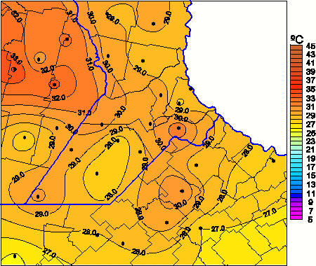 Mapa de temperaturas máximas de las las últimas 24 horas.