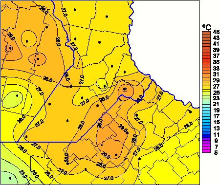 Mapa de temperaturas máximas de las las últimas 24 horas.