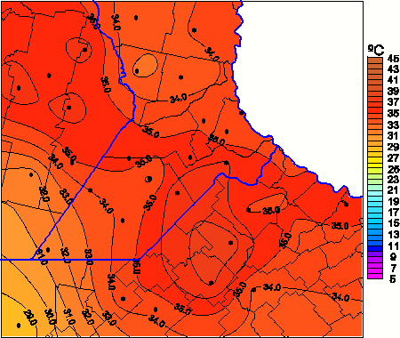 Mapa de temperaturas máximas de las las últimas 96 horas.